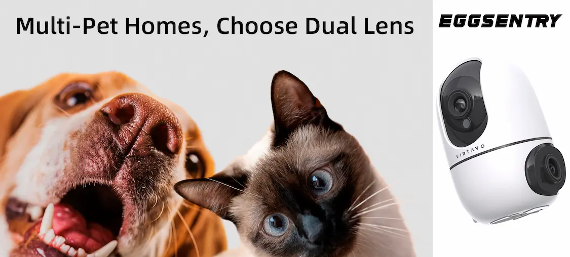 VIRTAVO EggSentry Dual Lens Security Camera | 360° View Indoor Cam, Pet Camera & Baby Monitor with AI Motion Tracking